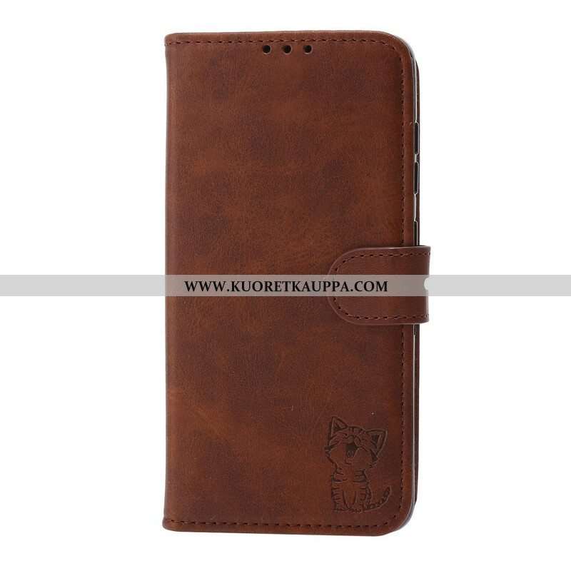 Nahkakotelo Samsung Galaxy S21 FE Keinonahkainen Kissanpentu