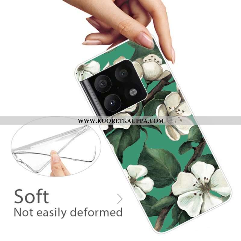 Case OnePlus 10 Pro 5G Maalattuja Valkoisia Kukkia