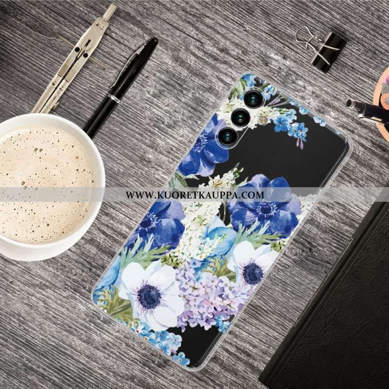 Case Samsung Galaxy A13 5G / A04s Akvarelli Siniset Kukat