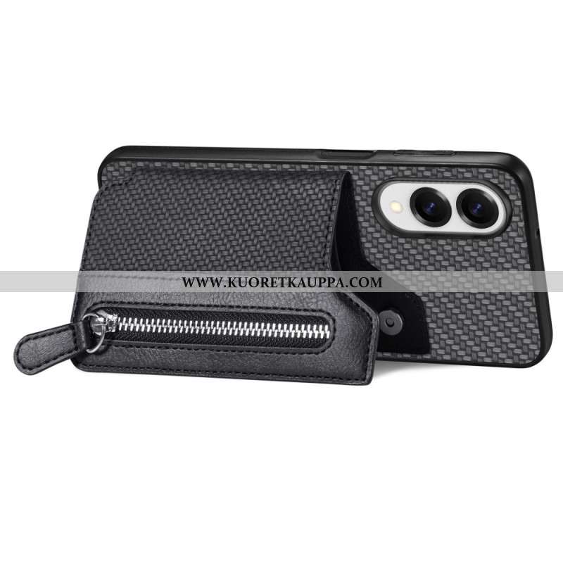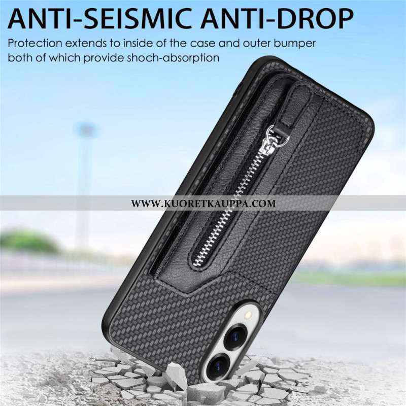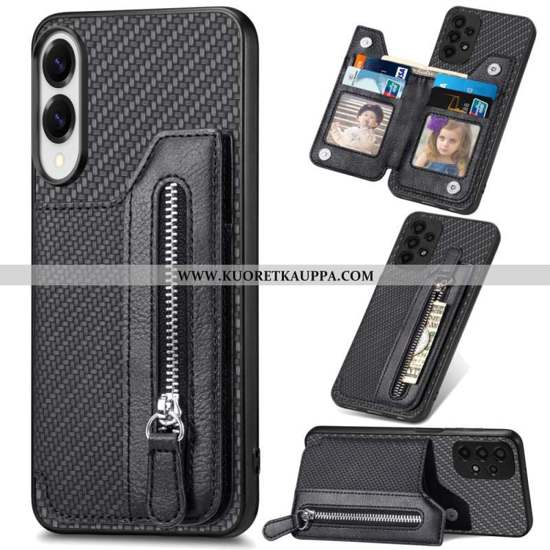 Kuori Samsung Galaxy S25 5g Edge Hiilikuitu Korttikotelolla Ja Hihnalla Varustettu Jalusta Suojakuor