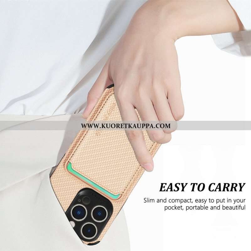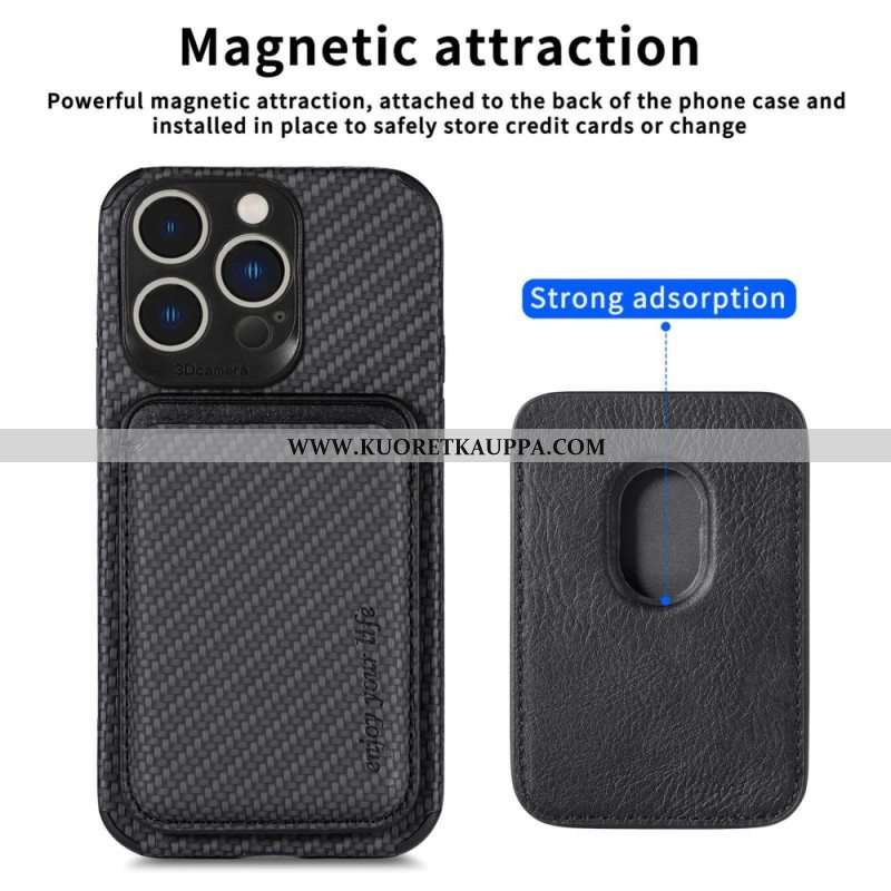 Case iPhone 14 Pro Lompakkokuori Hiilikuitu Ja Magneettinen Lompakko
