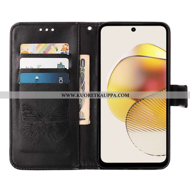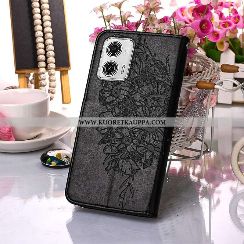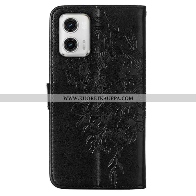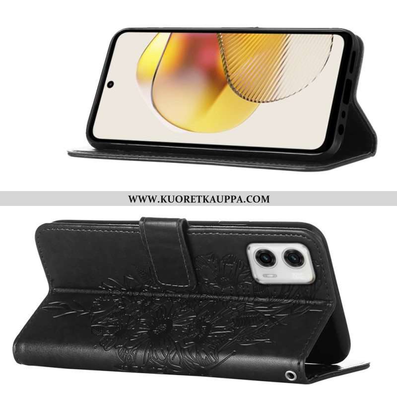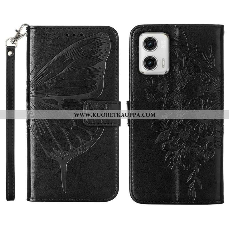 Flip Case Moto G73 5G Suojaketju Kuori Strappy Kukkaperhonen