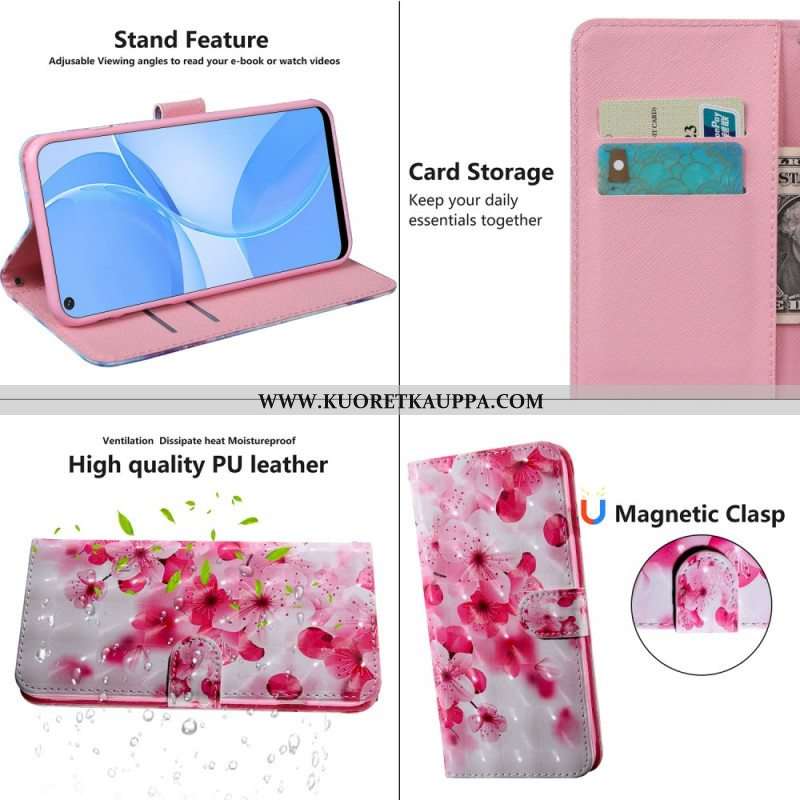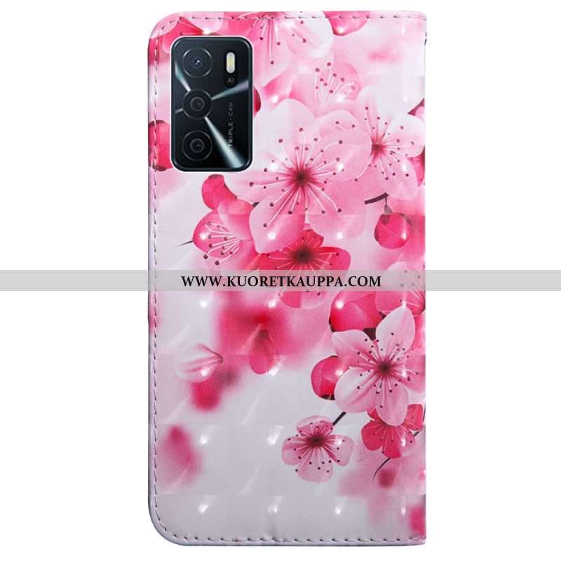 Flip Case Oppo A16 / A16s Vaaleanpunaiset Kukat