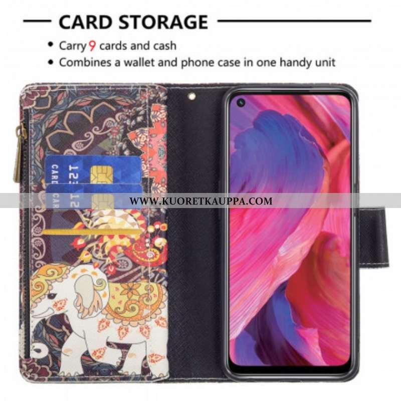 Flip Case Oppo A54 5G / A74 5G Elephant Vetoketjullinen Tasku