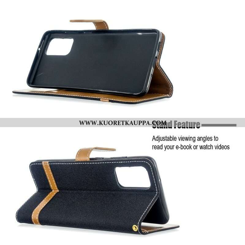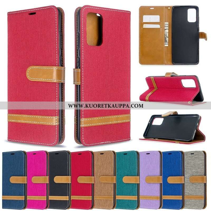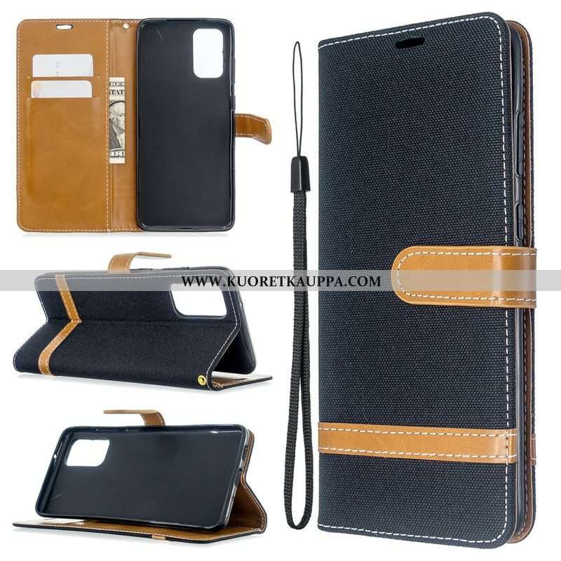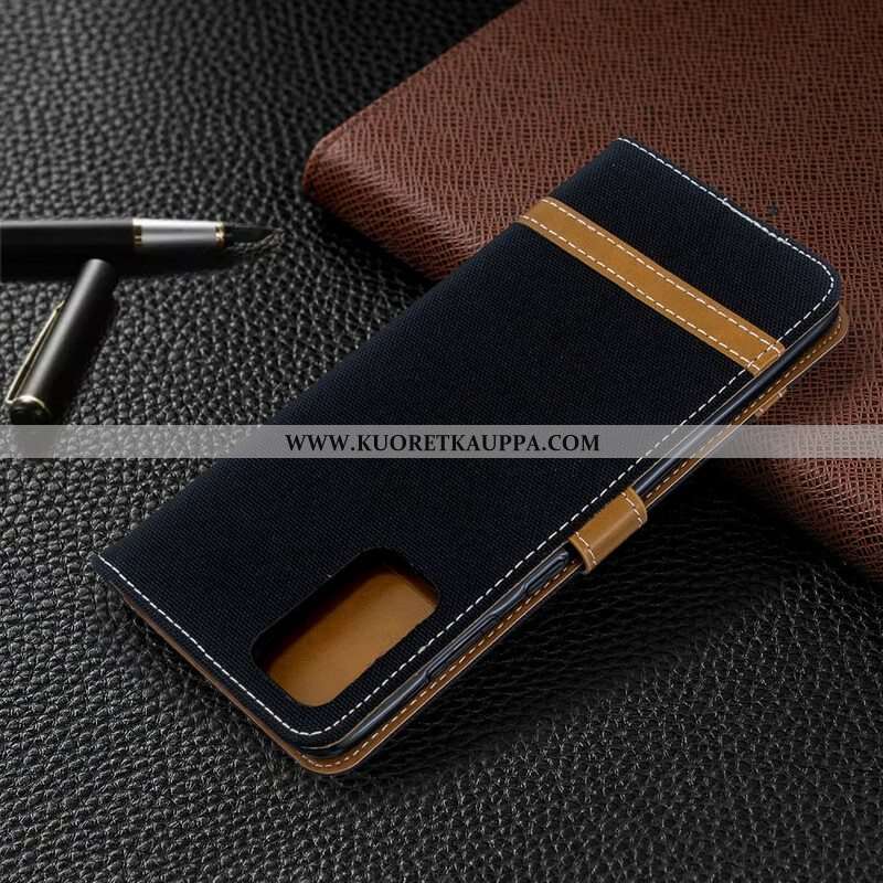 Flip Case Samsung Galaxy S20 Plus / S20 Plus 5G Suojaketju Kuori Kangas- Ja Nahkaefektihihna