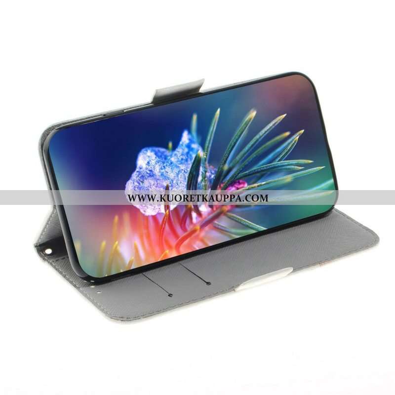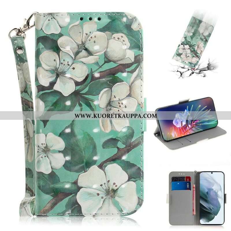 Flip Case Samsung Galaxy S21 FE Suojaketju Kuori Kukkiva Oksa Hihnalla