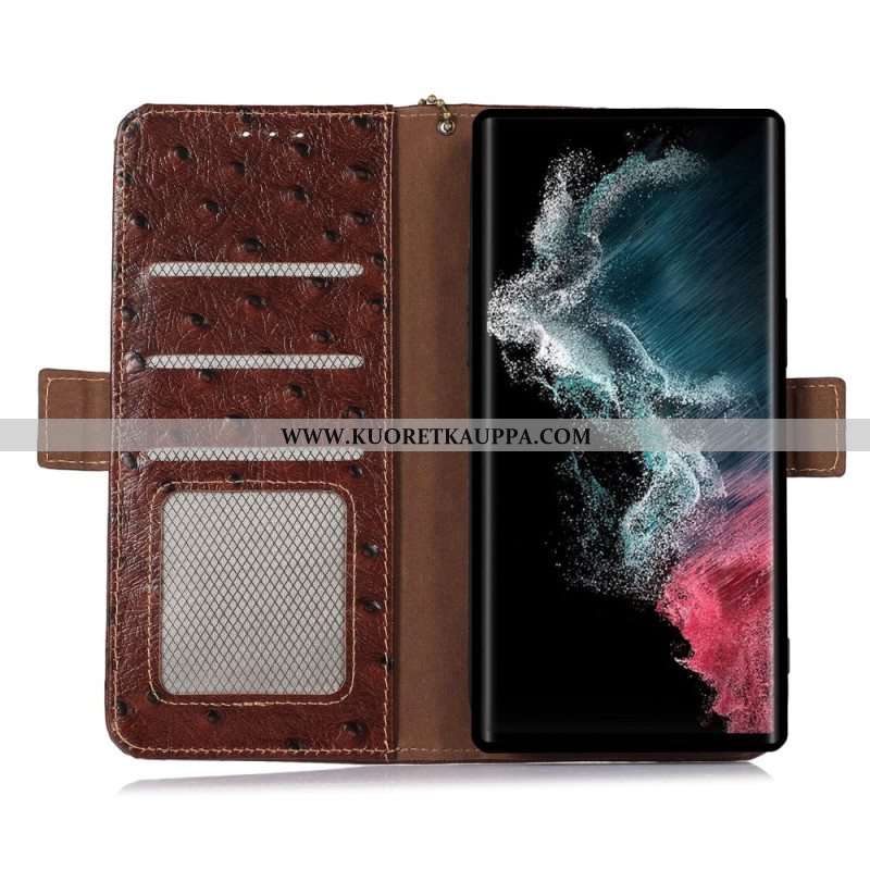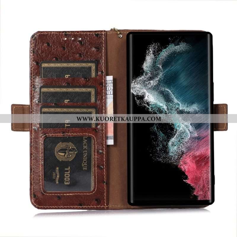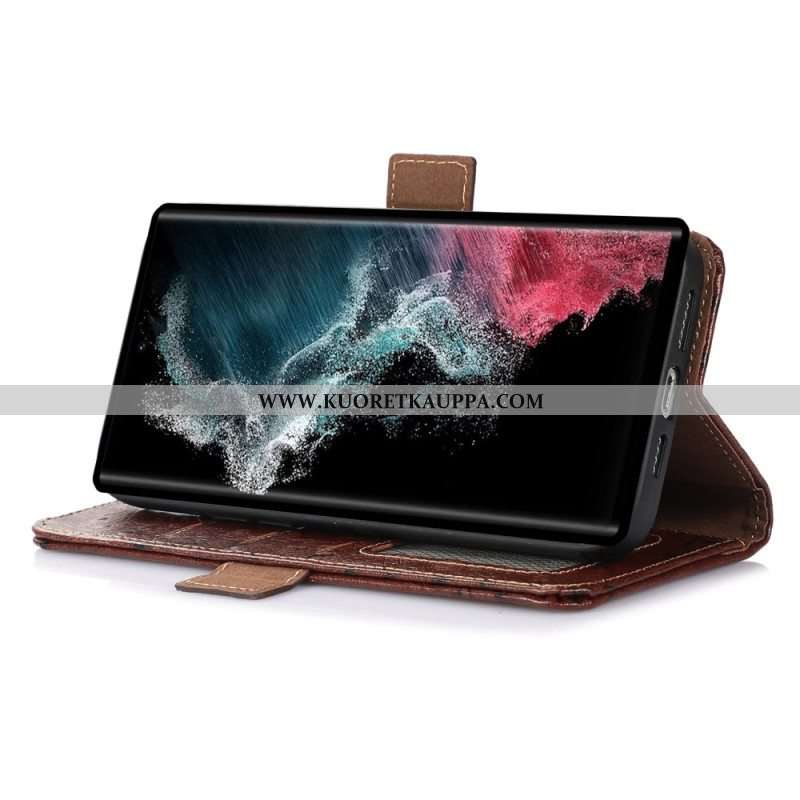 Flip Case Samsung Galaxy S23 Ultra 5G Aito Kuvioitu Nahka Rfid