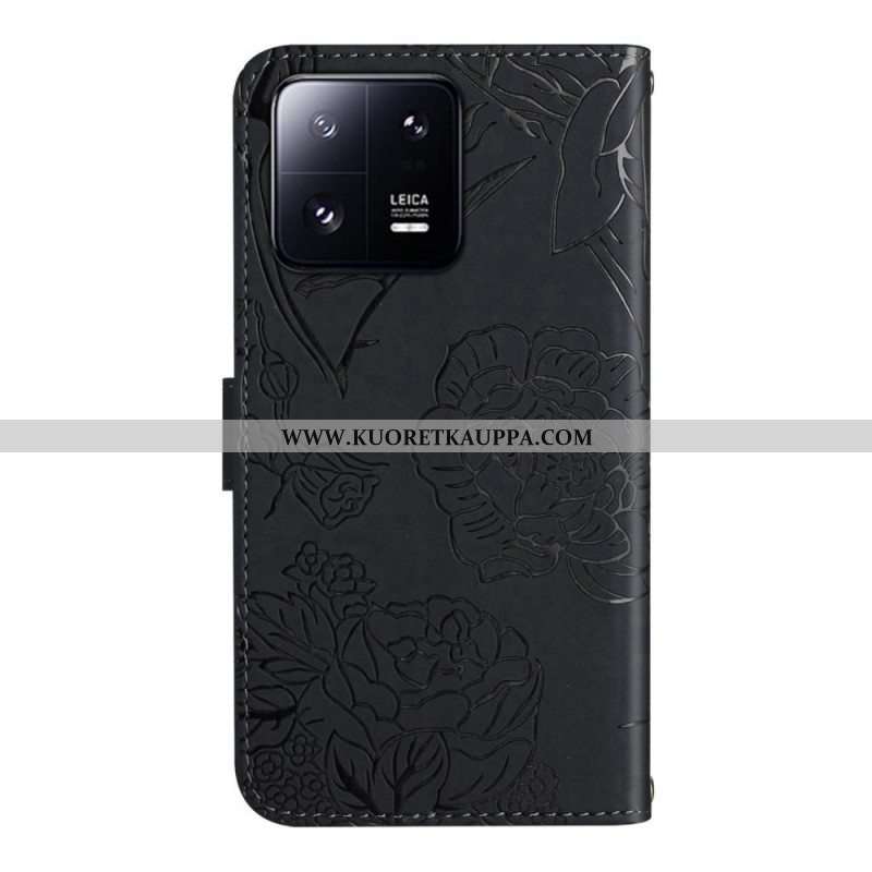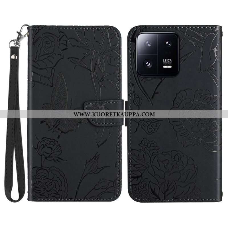 Flip Case Xiaomi 13 Pro Perhosia Ja Kaulanauhaa