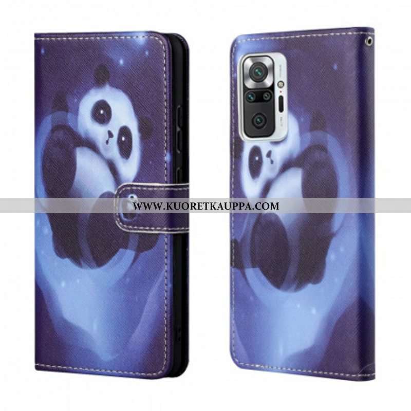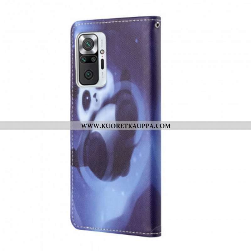 Flip Case Xiaomi Redmi Note 10 Pro Suojaketju Kuori Panda Space Kaulanauhalla