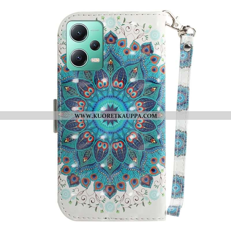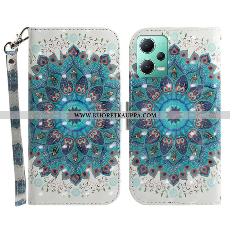 Flip Case Xiaomi Redmi Note 12 5G Suojaketju Kuori Strappy Mandala