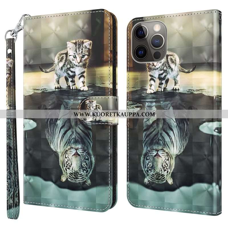 Flip Case iPhone 15 Pro Max Suojaketju Kuori 3d Kitten Dream Hihnalla