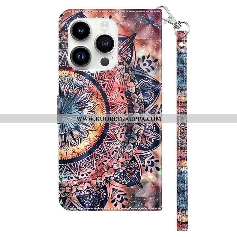 Flip Case iPhone 15 Pro Suojaketju Kuori Mandala Hihnalla