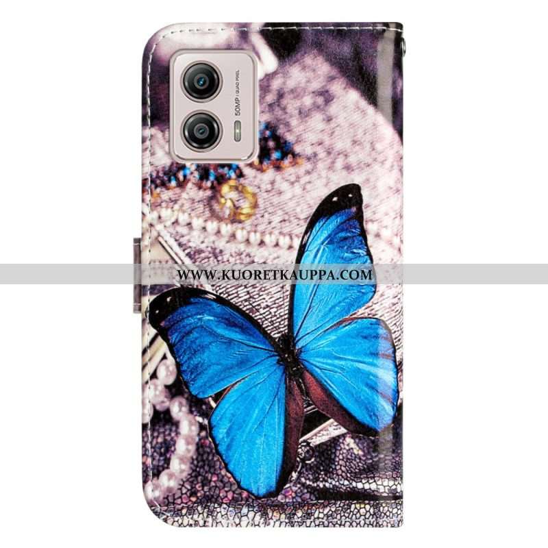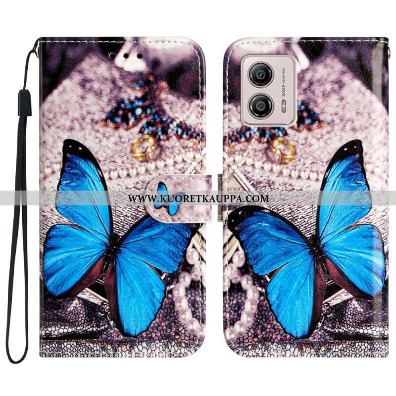 Kotelot Moto G73 5G Suojaketju Kuori Precious Blue Butterfly Hihnalla
