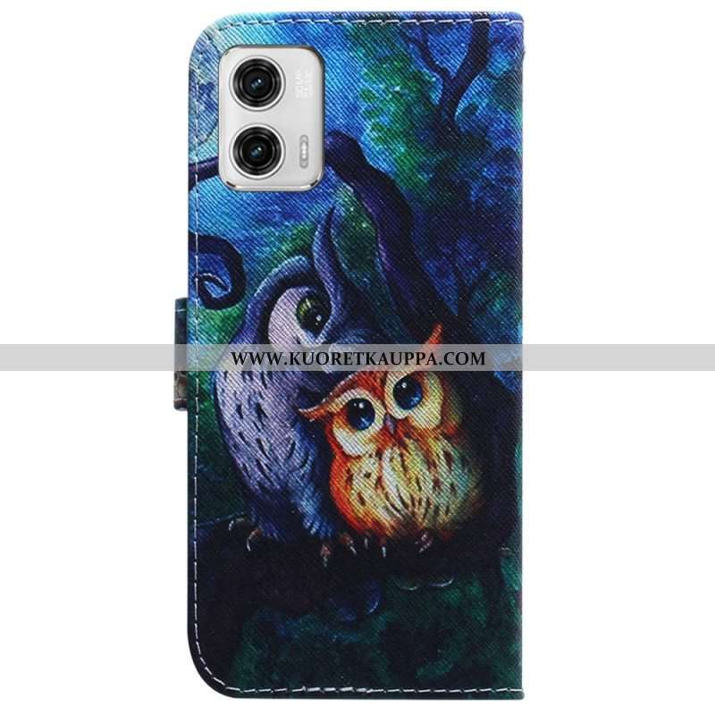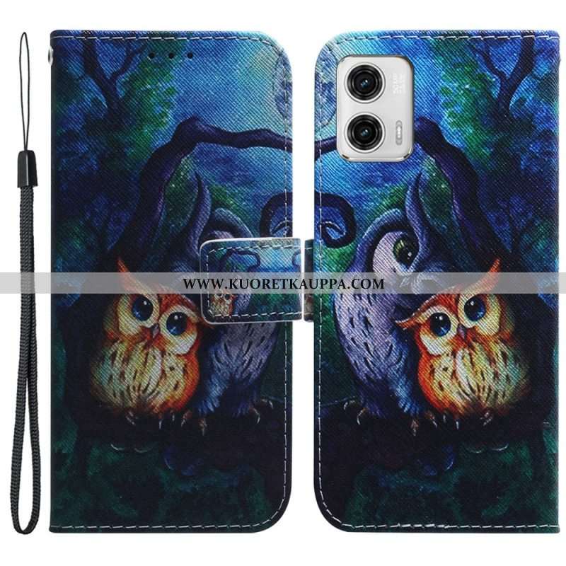 Kotelot Moto G73 5G Suojaketju Kuori Strappy Owls -maalaus