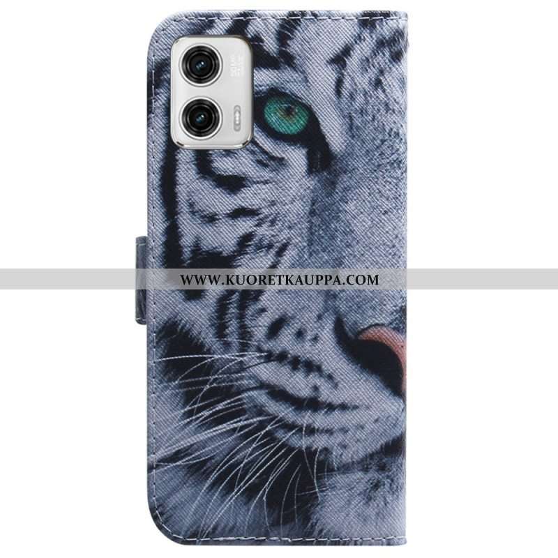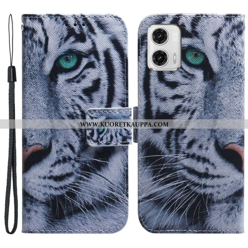 Kotelot Moto G73 5G Suojaketju Kuori Strappy White Tiger