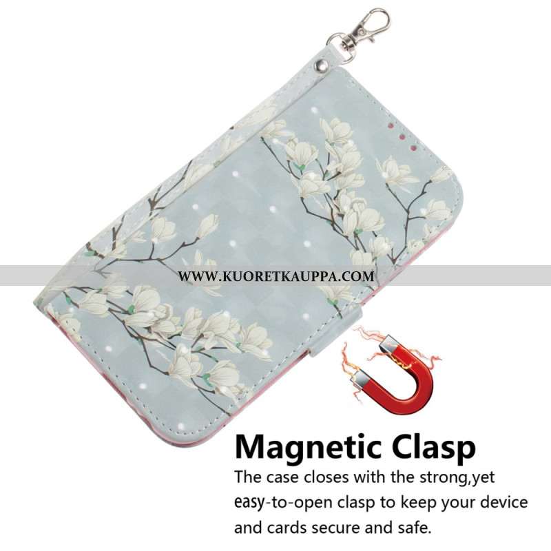 Kotelot Oneplus Nord 5 Valkoiset Hihnoilla Koristellut Kukat