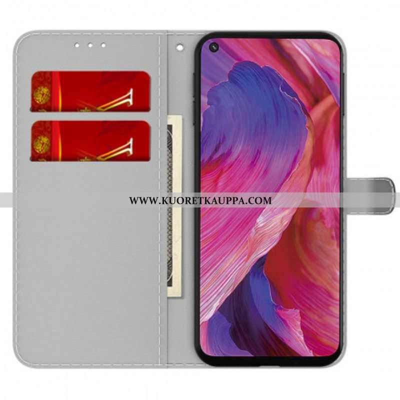 Flip Case Oppo A54 5G / A74 5G Suojaketju Kuori Kissa Ja Mehiläinen Kaulanauhalla