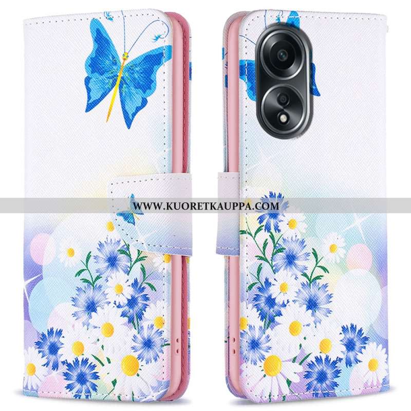 Kotelot Oppo A98 5g Perhonen Ja Kukat Akvarelli