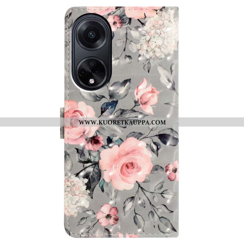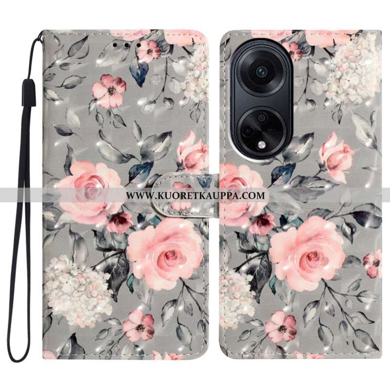 Kotelot Oppo A98 5g Vaaleanpunaiset Kukat Hihnalla