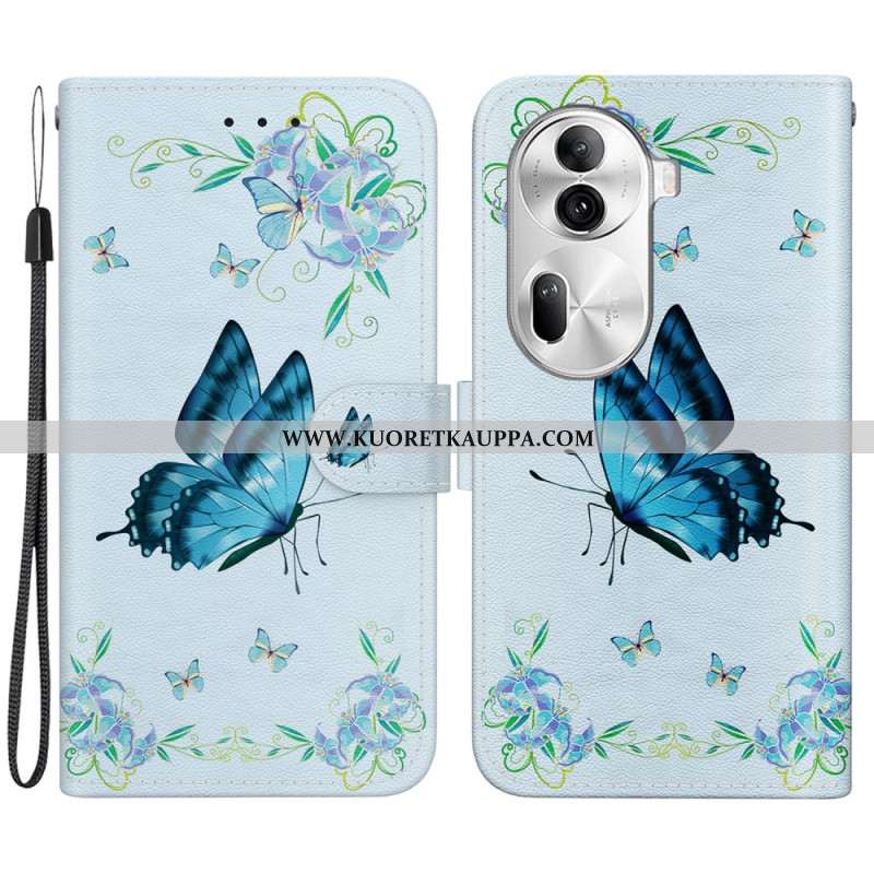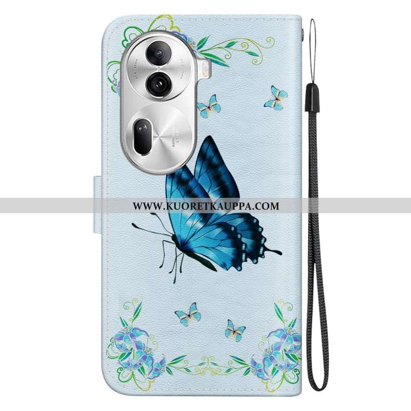 Kotelot Oppo Reno 11 Pro 5g Sininen Perhonen Ja Kukkia Hihnalla Suojakuori