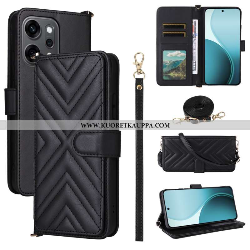 Kotelot Oppo Reno 14 Pro 5g Pitsimokkanahkaefekti Hihnalla Ja Olkahihnalla