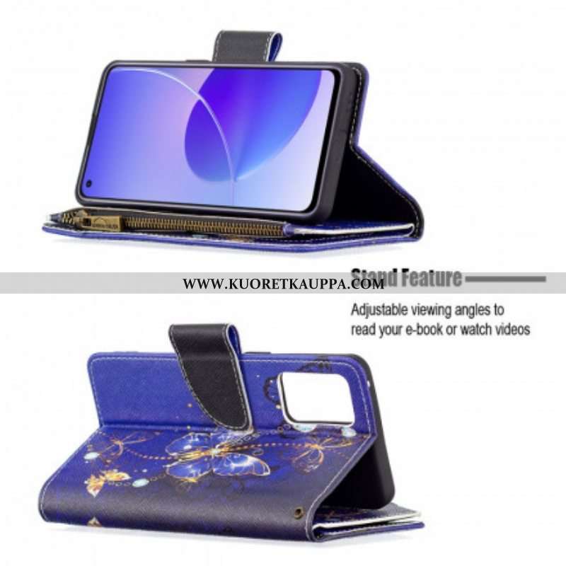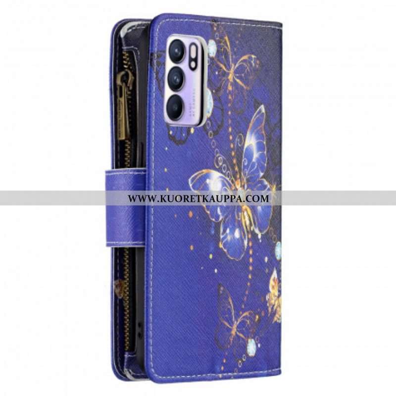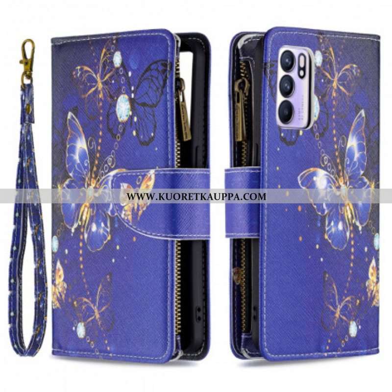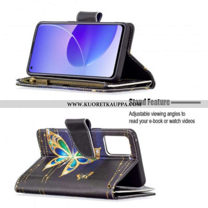 Kotelot Oppo Reno 6 5G Perhosten Vetoketjullinen Tasku