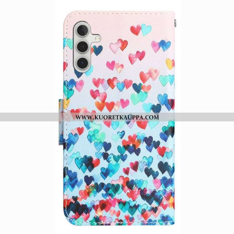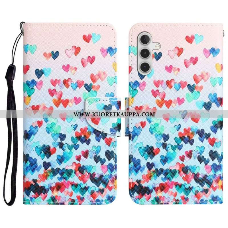 Kotelot Samsung Galaxy A14 / A14 5G Suojaketju Kuori Strappy Hearts Rain