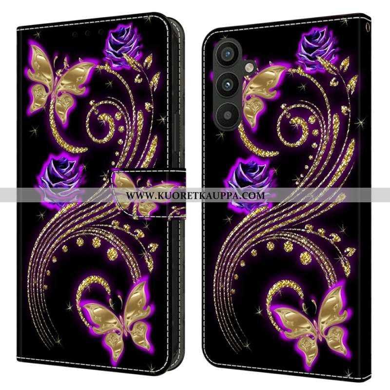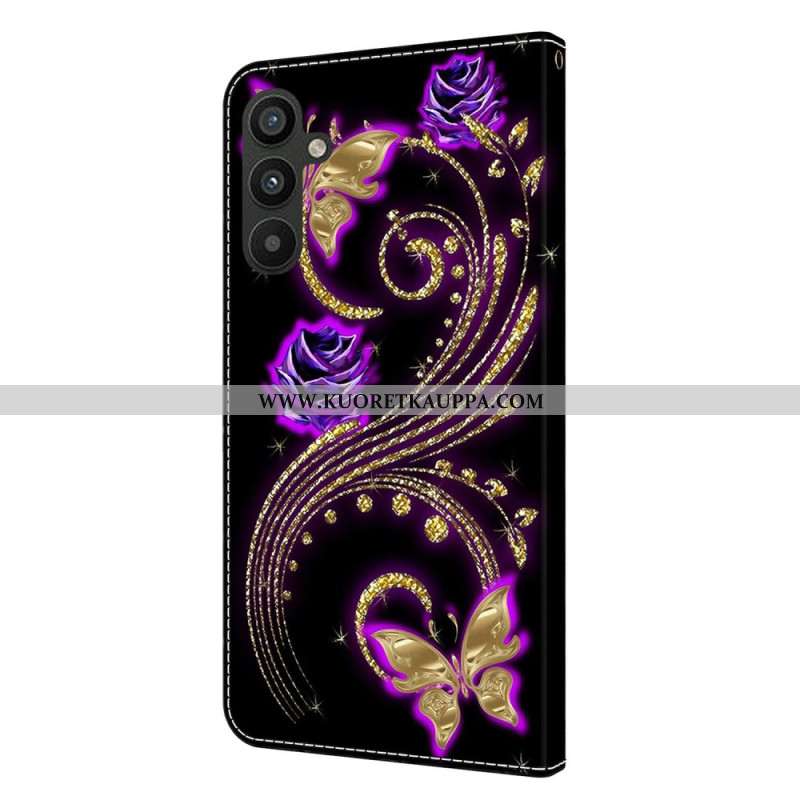 Kotelot Samsung Galaxy A15 Violetiset Kukat Ja Perhoset Suojakuori