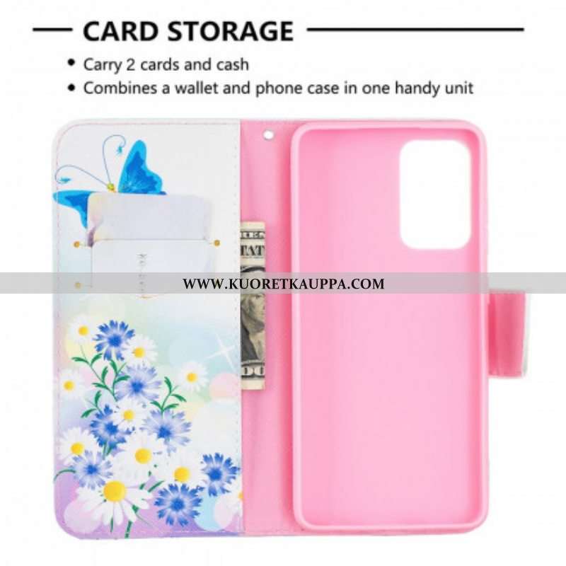 Kotelot Samsung Galaxy A52 4G / A52 5G / A52s 5G Maalattuja Perhosia Ja Kukkia
