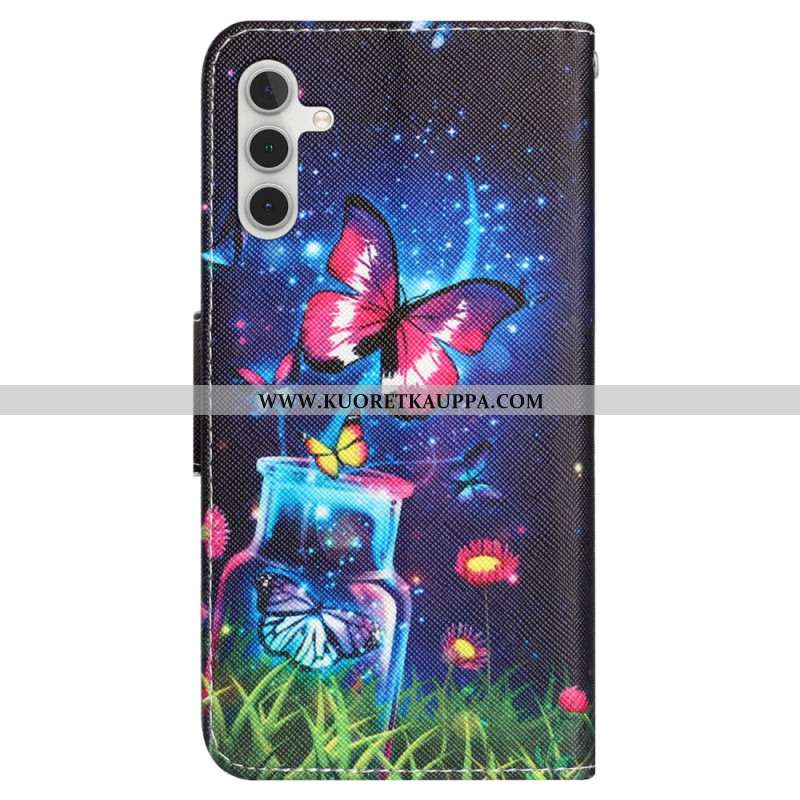 Kotelot Samsung Galaxy A55 5g Puhelinkuoret Pullo Ja Perhoset Hihnalla