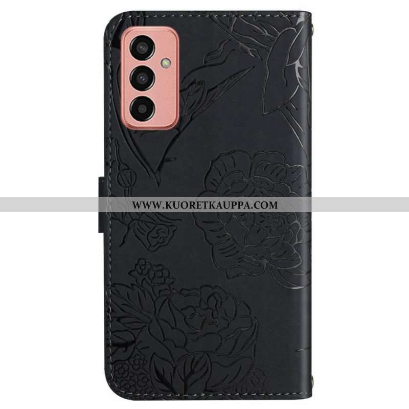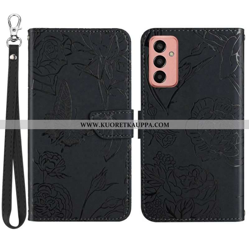 Kotelot Samsung Galaxy M13 Hienovaraiset Perhoset Ja Kaulanauha