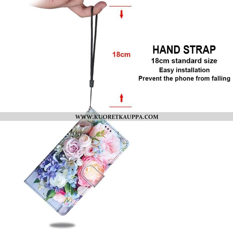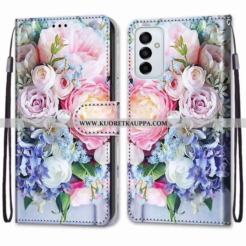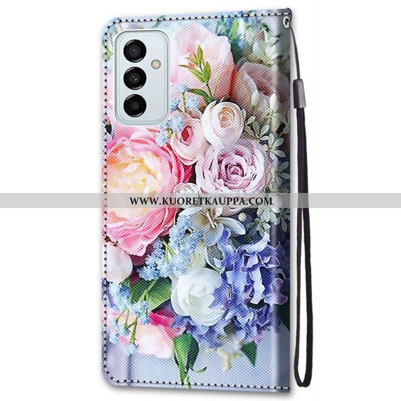 Flip Case Samsung Galaxy M23 5G Kukkaro Ja Kaulanauha Kukka