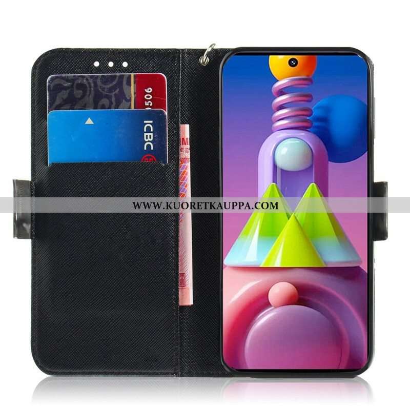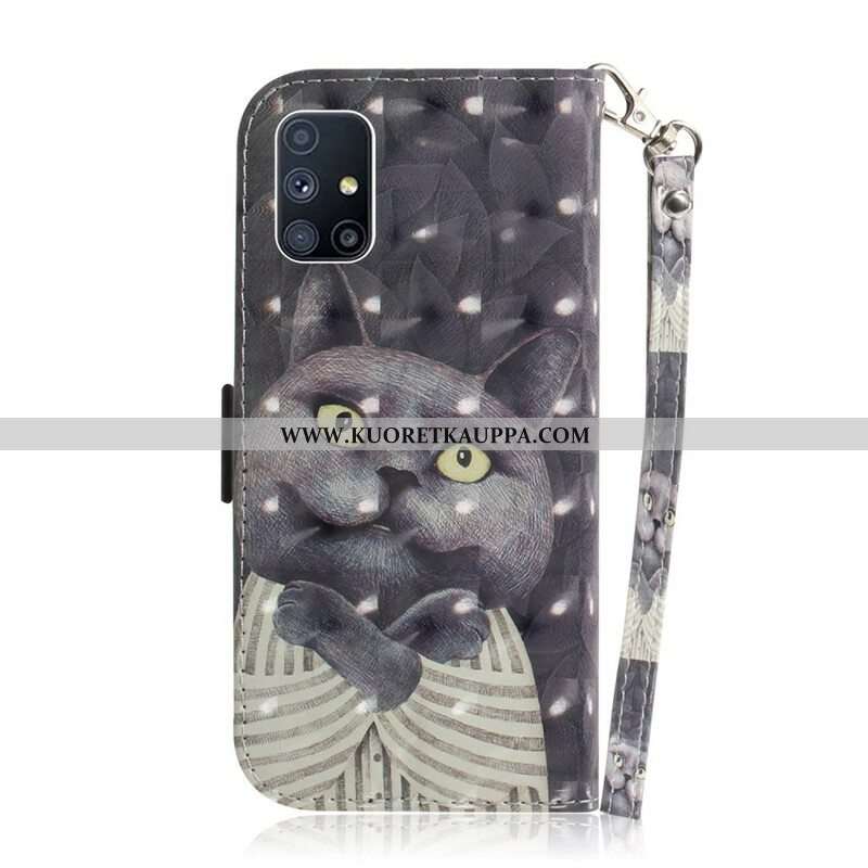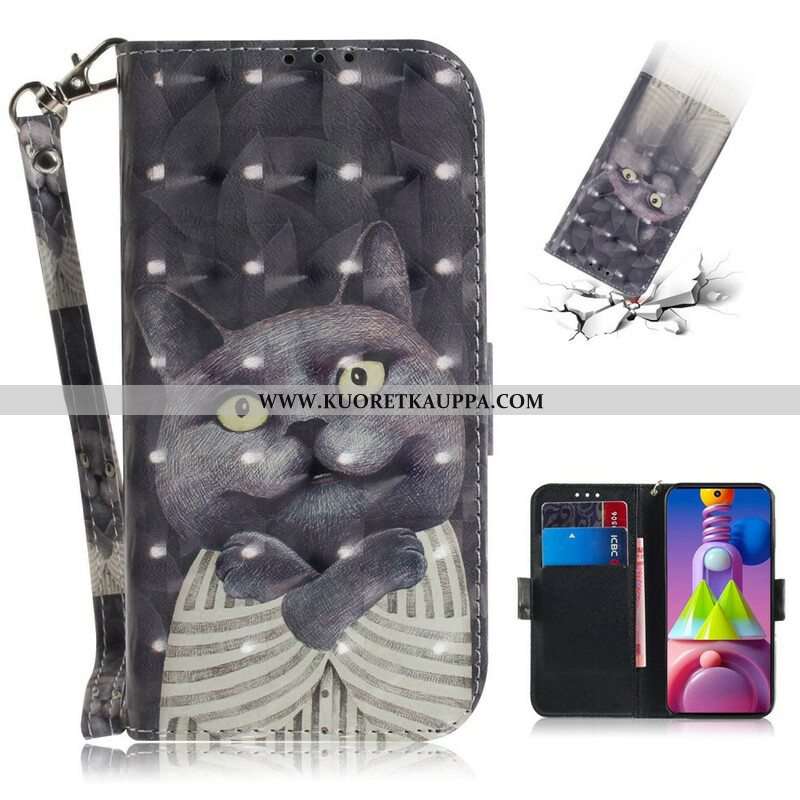Kotelot Samsung Galaxy M51 Suojaketju Kuori Harmaa Kissa Hihnalla