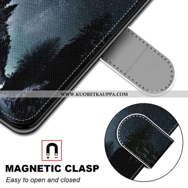 Nahkakotelo Samsung Galaxy M52 5G Suojaketju Kuori Tangapuu Ja Pöllöt