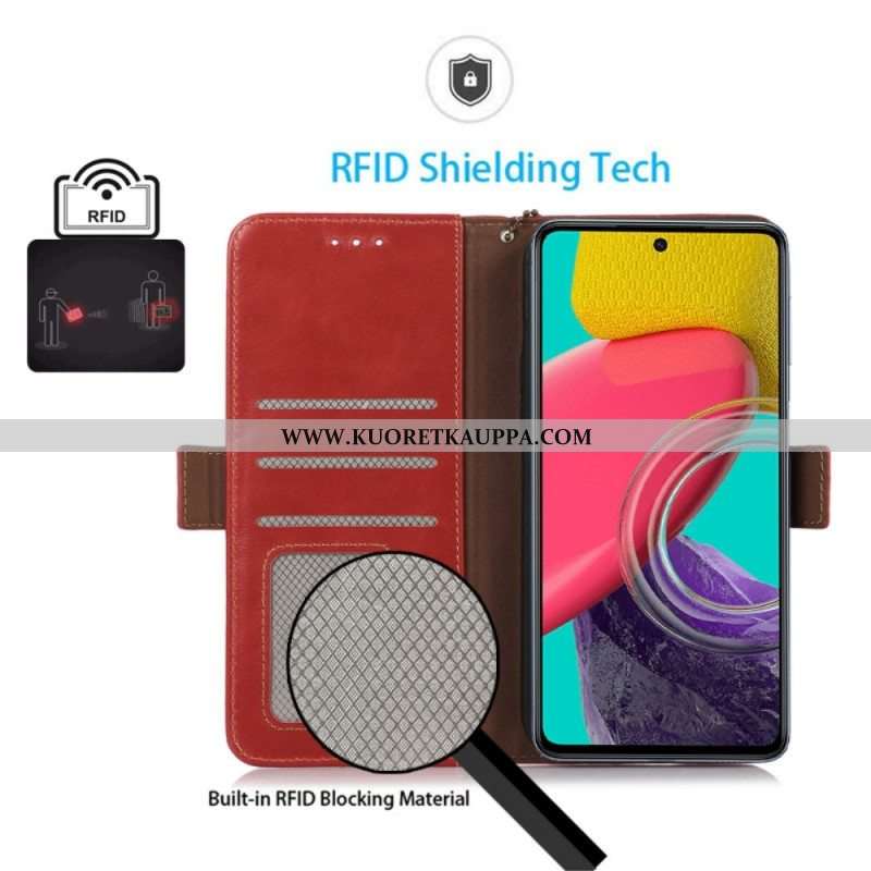 Kotelot Samsung Galaxy M53 5G Aito Nahka Rfid-toiminto