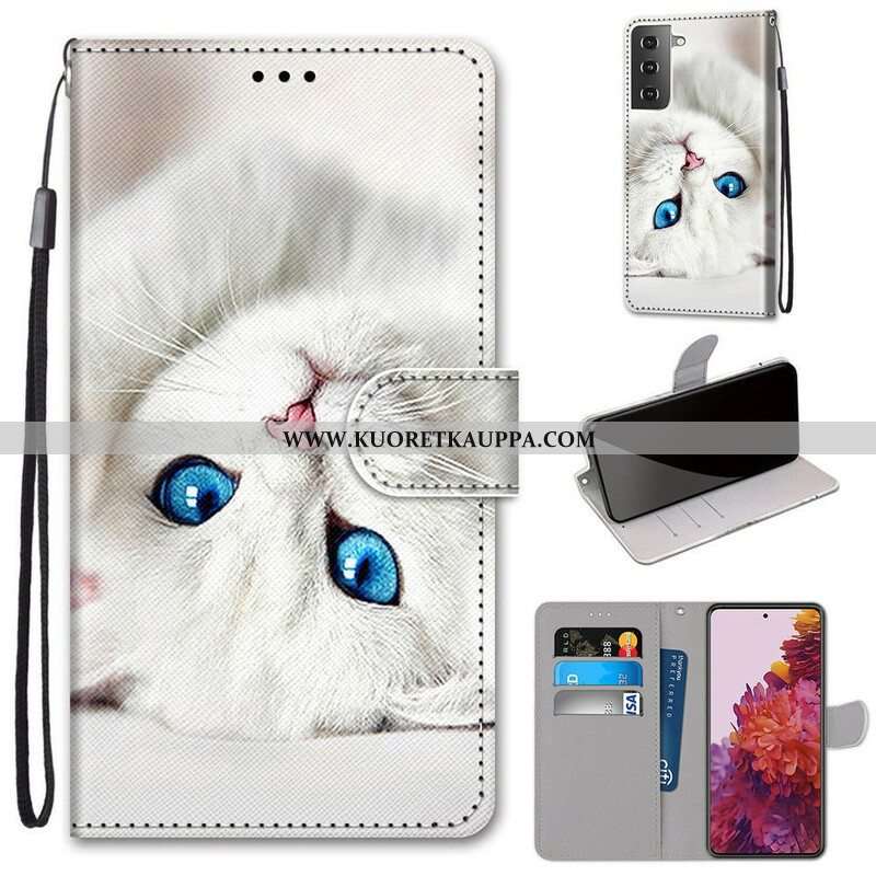 Kotelot Samsung Galaxy S21 5G Suojaketju Kuori Kissan Vaaleat Täplät Hihnalla
