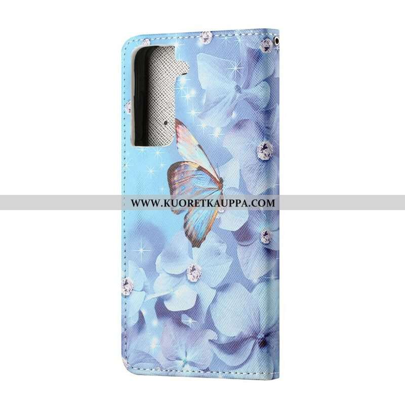 Kotelot Samsung Galaxy S21 5G Suojaketju Kuori Strappy Diamond Perhoset