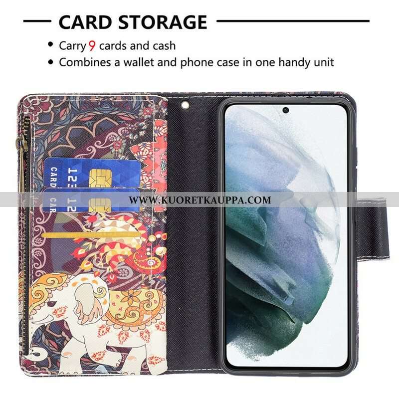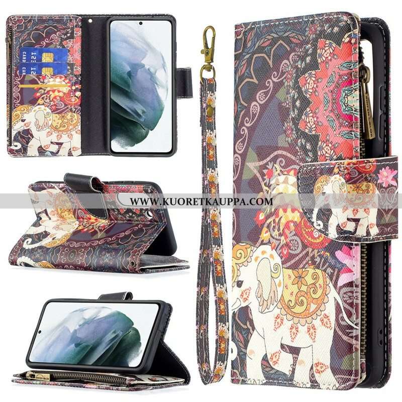 Kotelot Samsung Galaxy S21 FE Elephant Vetoketjullinen Tasku