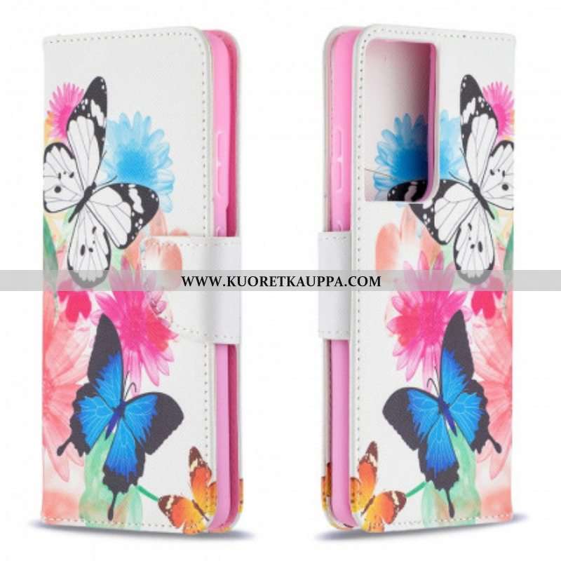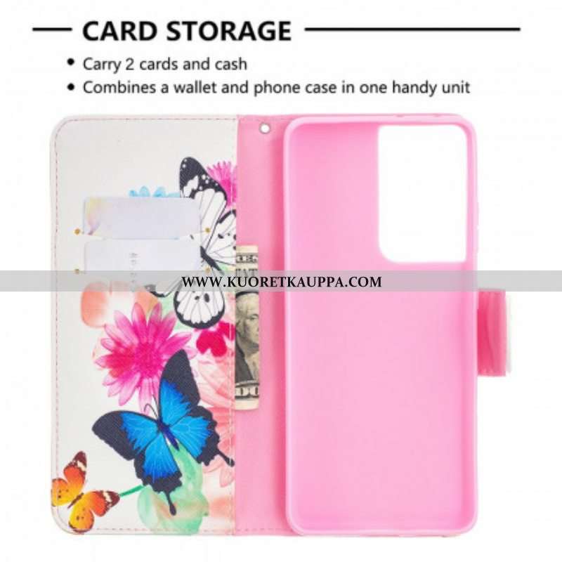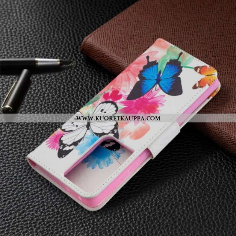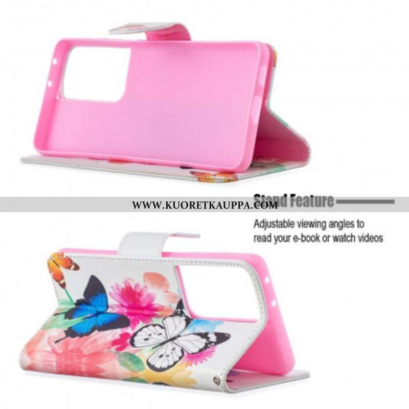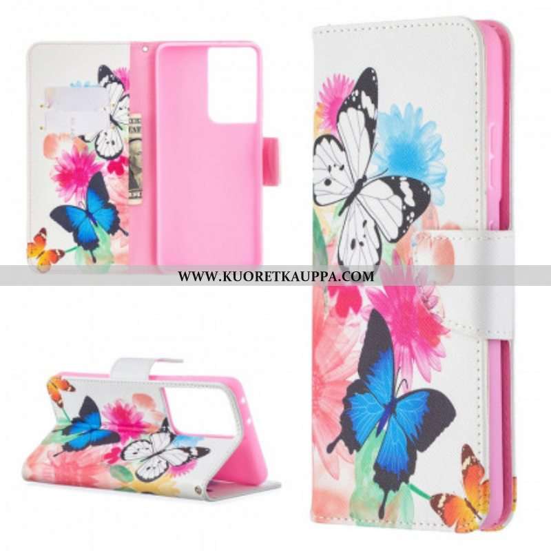 Kotelot Samsung Galaxy S21 Ultra 5G Maalattuja Perhosia Ja Kukkia
