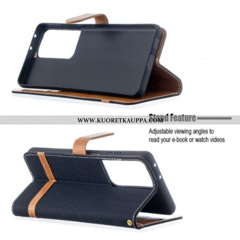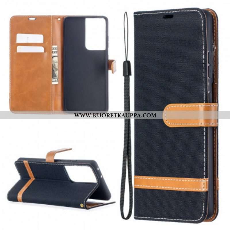 Kotelot Samsung Galaxy S21 Ultra 5G Suojaketju Kuori Kangas- Ja Nahkaefektihihna