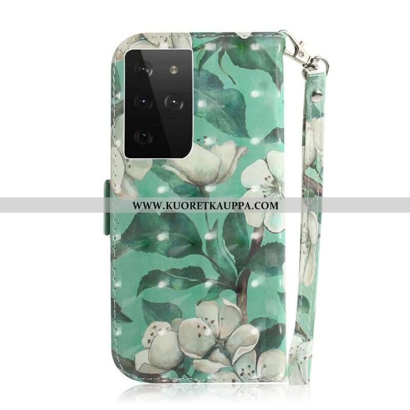 Kotelot Samsung Galaxy S21 Ultra 5G Suojaketju Kuori Kukkiva Oksa Hihnalla