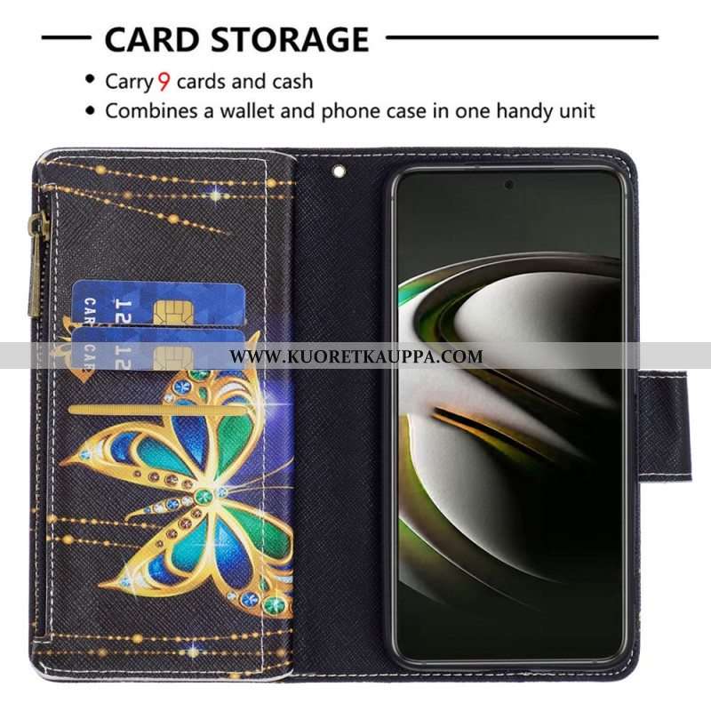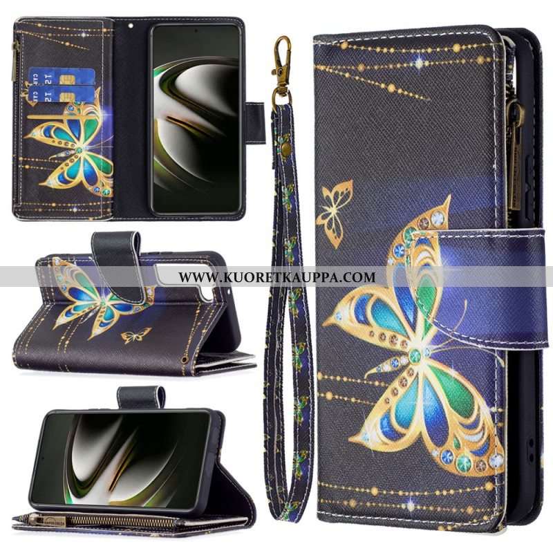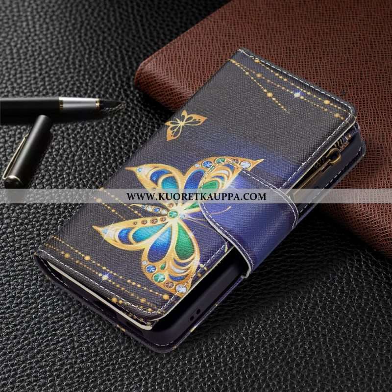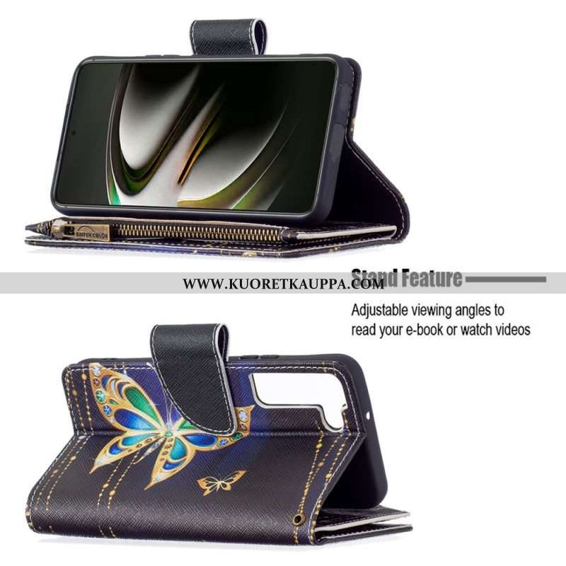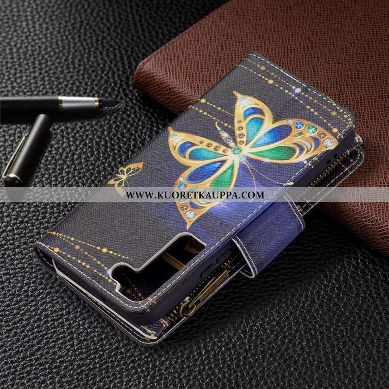 Kotelot Samsung Galaxy S22 5G Perhosten Vetoketjullinen Tasku