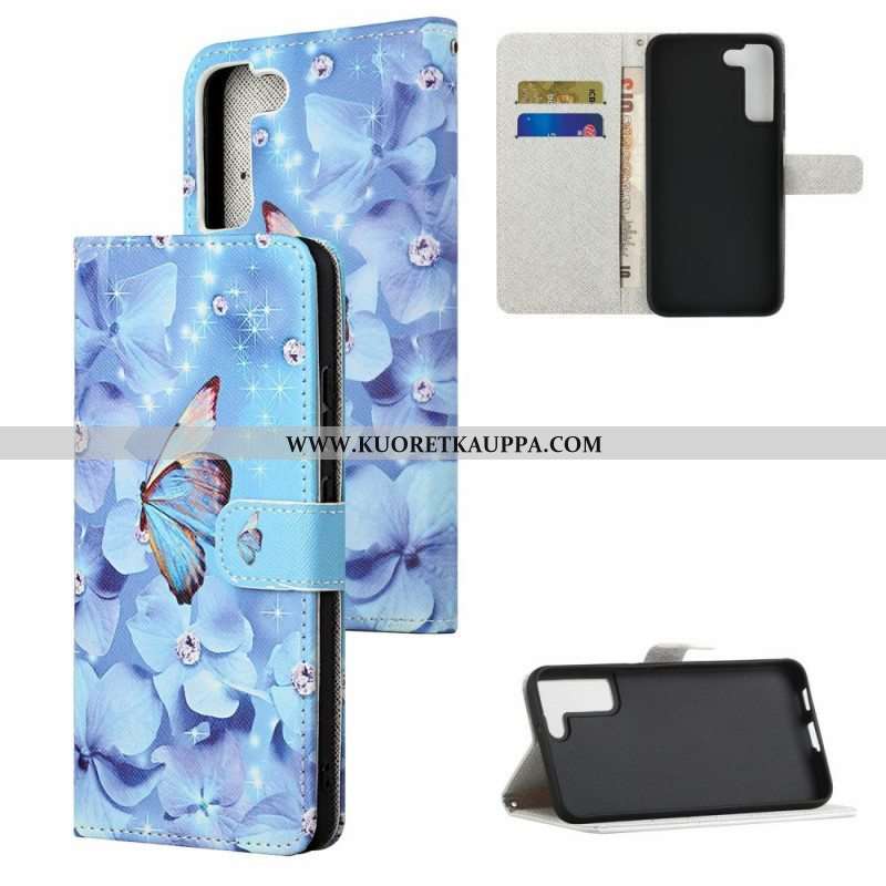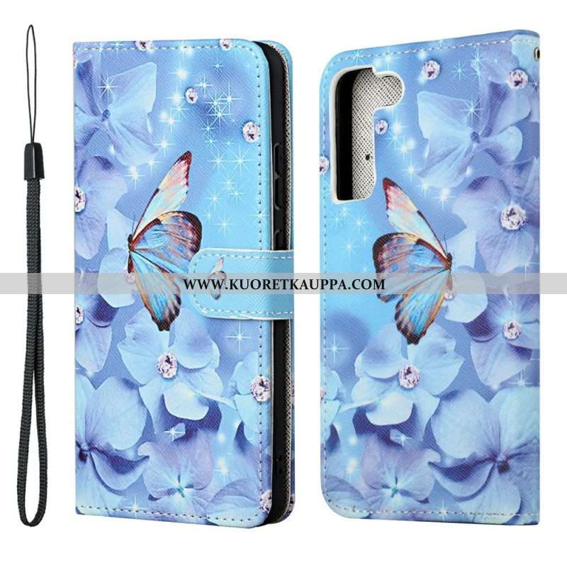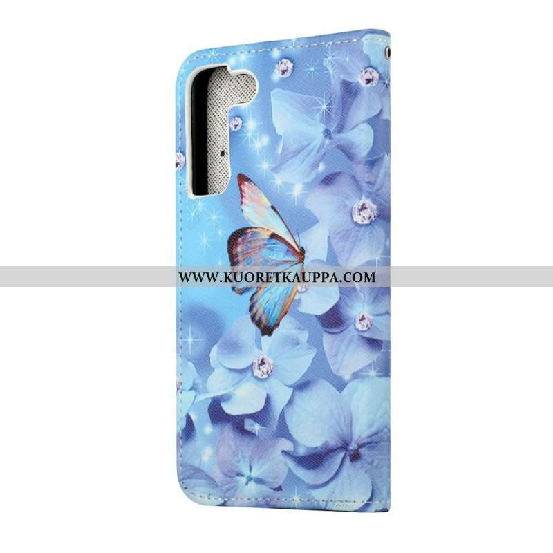 Kotelot Samsung Galaxy S22 Plus 5G Suojaketju Kuori Strappy Diamond Perhoset