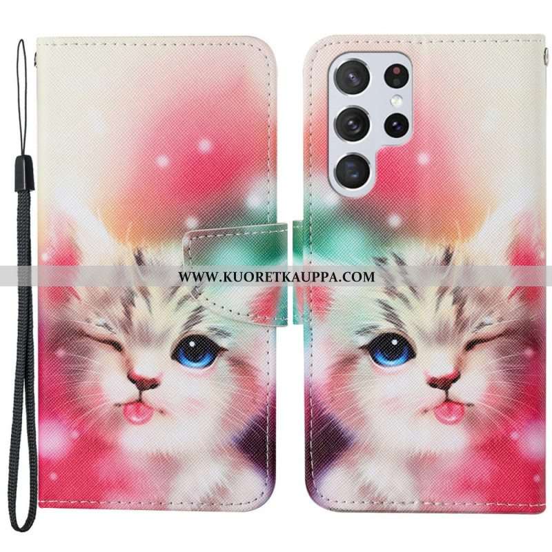 Kotelot Samsung Galaxy S22 Ultra 5G Kuninkaallinen Kissa Kaulanauhalla