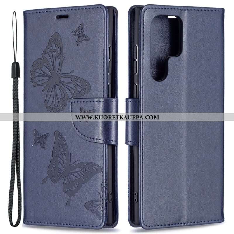 Kotelot Samsung Galaxy S22 Ultra 5G Perhosia Lennossa Lanyardin Kanssa