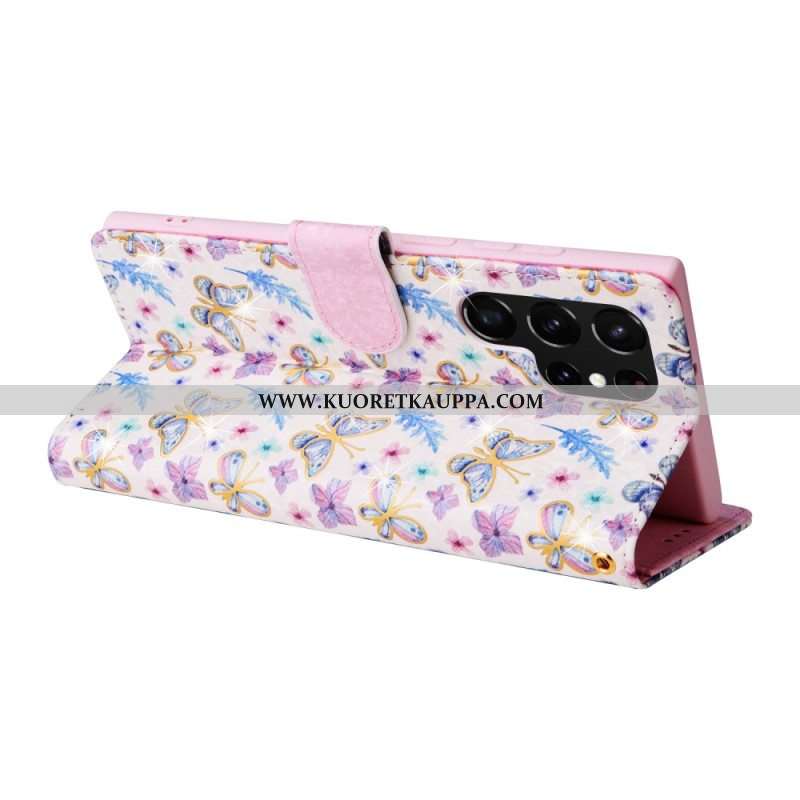 Nahkakotelo Samsung Galaxy S23 Ultra 5G Upeita Perhosia