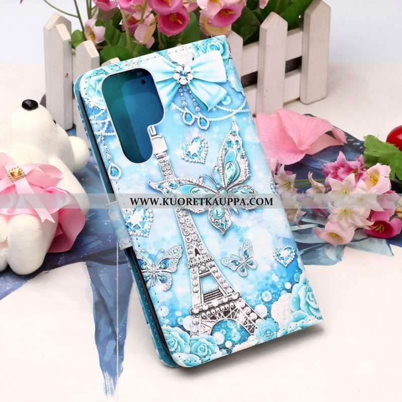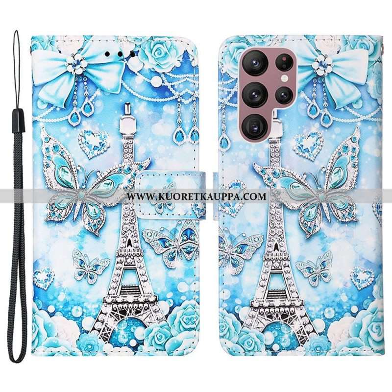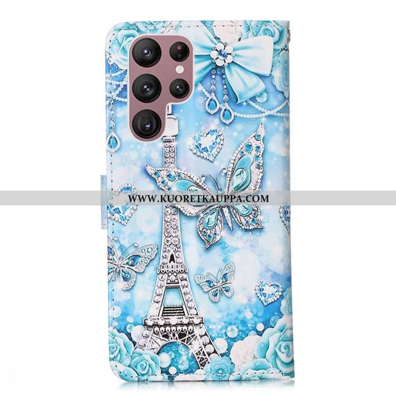 Kotelot Samsung Galaxy S23 Ultra 5G Suojaketju Kuori Eiffel-tornin Perhoshihna