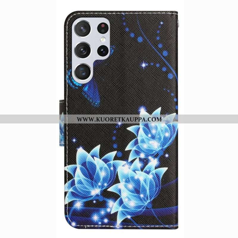 Kotelot Samsung Galaxy S23 Ultra 5G Suojaketju Kuori Perhosia Hihnassa