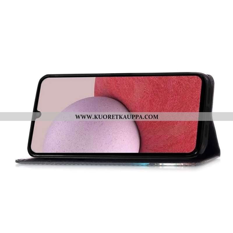 Nahkakotelo Samsung Galaxy S23 Ultra 5G Puu. Jossa On Vihreitä Lehtiä