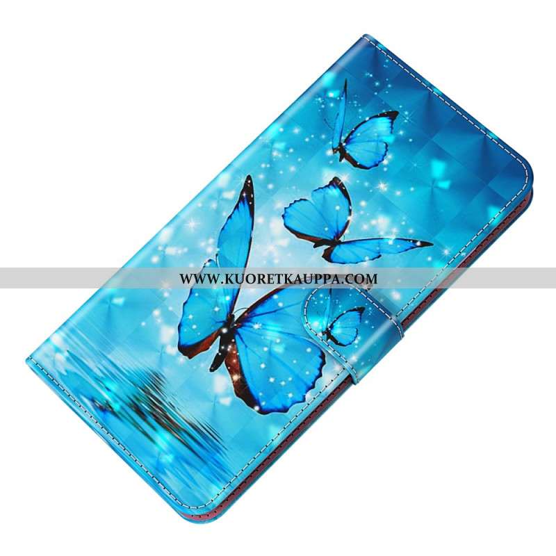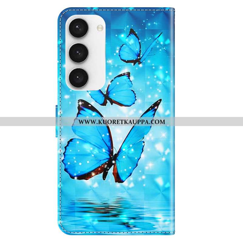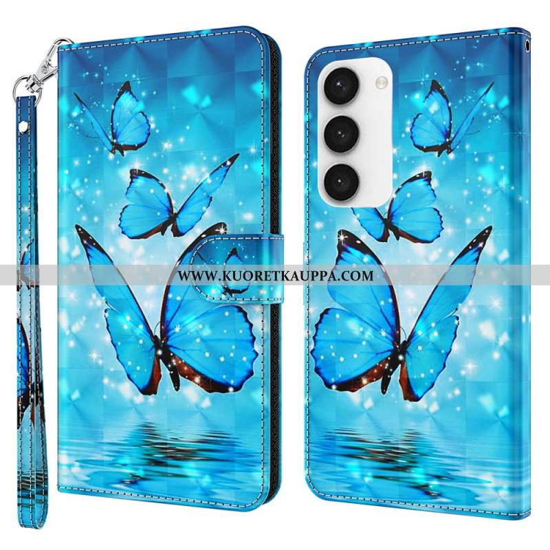 Kotelot Samsung Galaxy S24 5g Siniset Perhoset Hihnalla